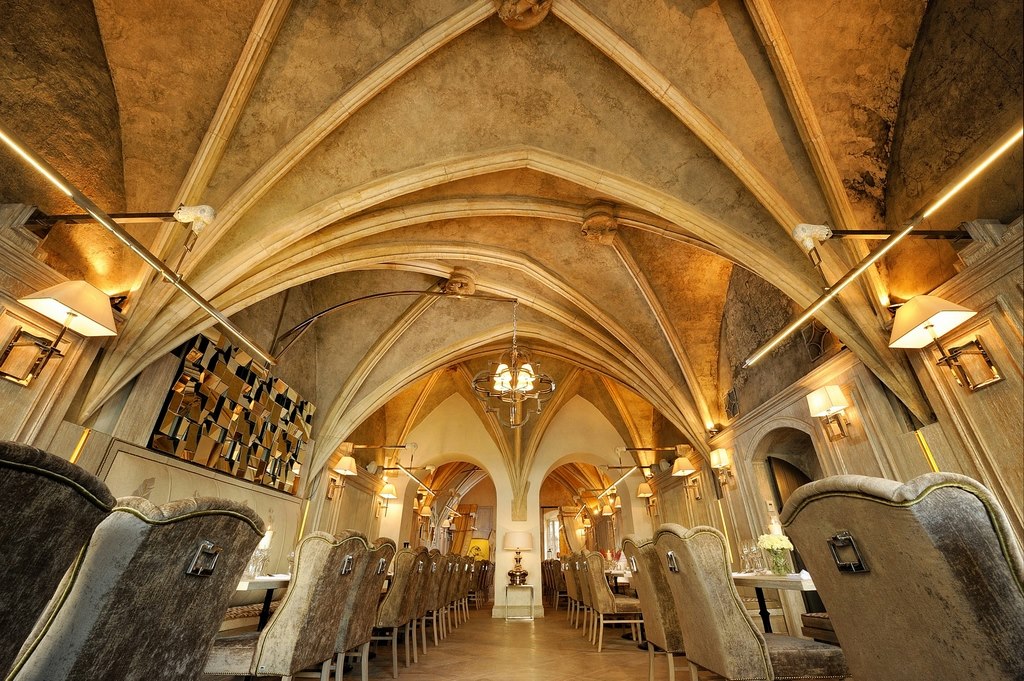 Luxurious decoration, very high ceiling on the ground floor if you want a classical diner,