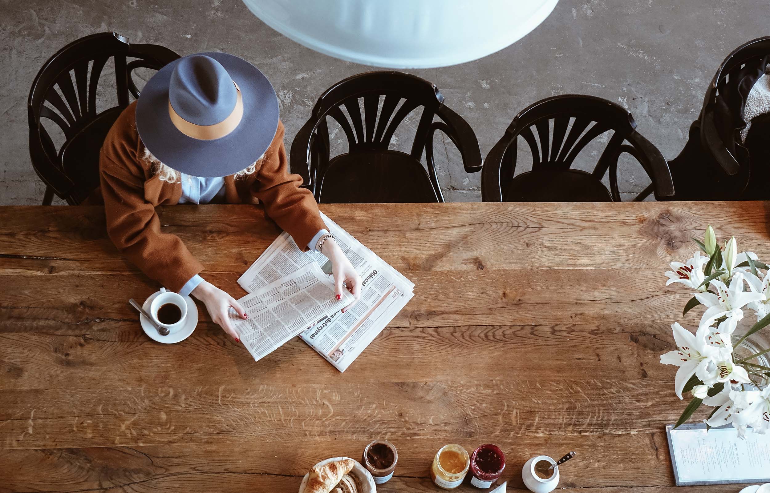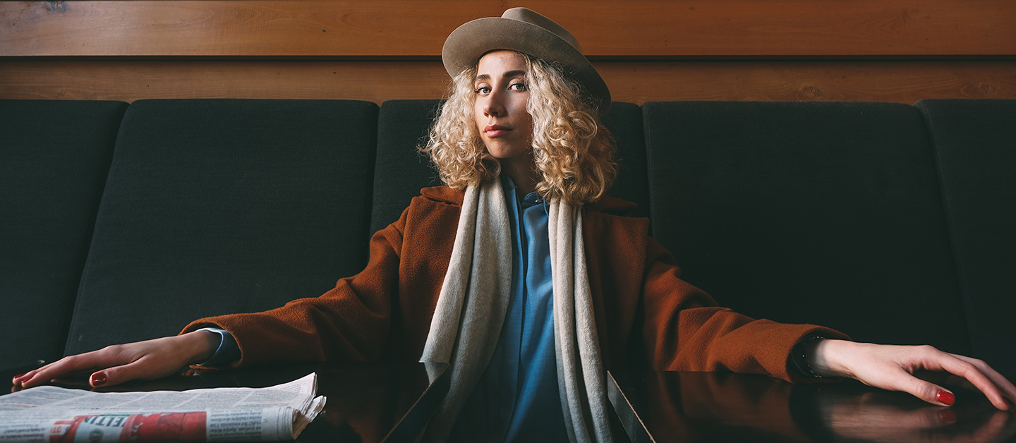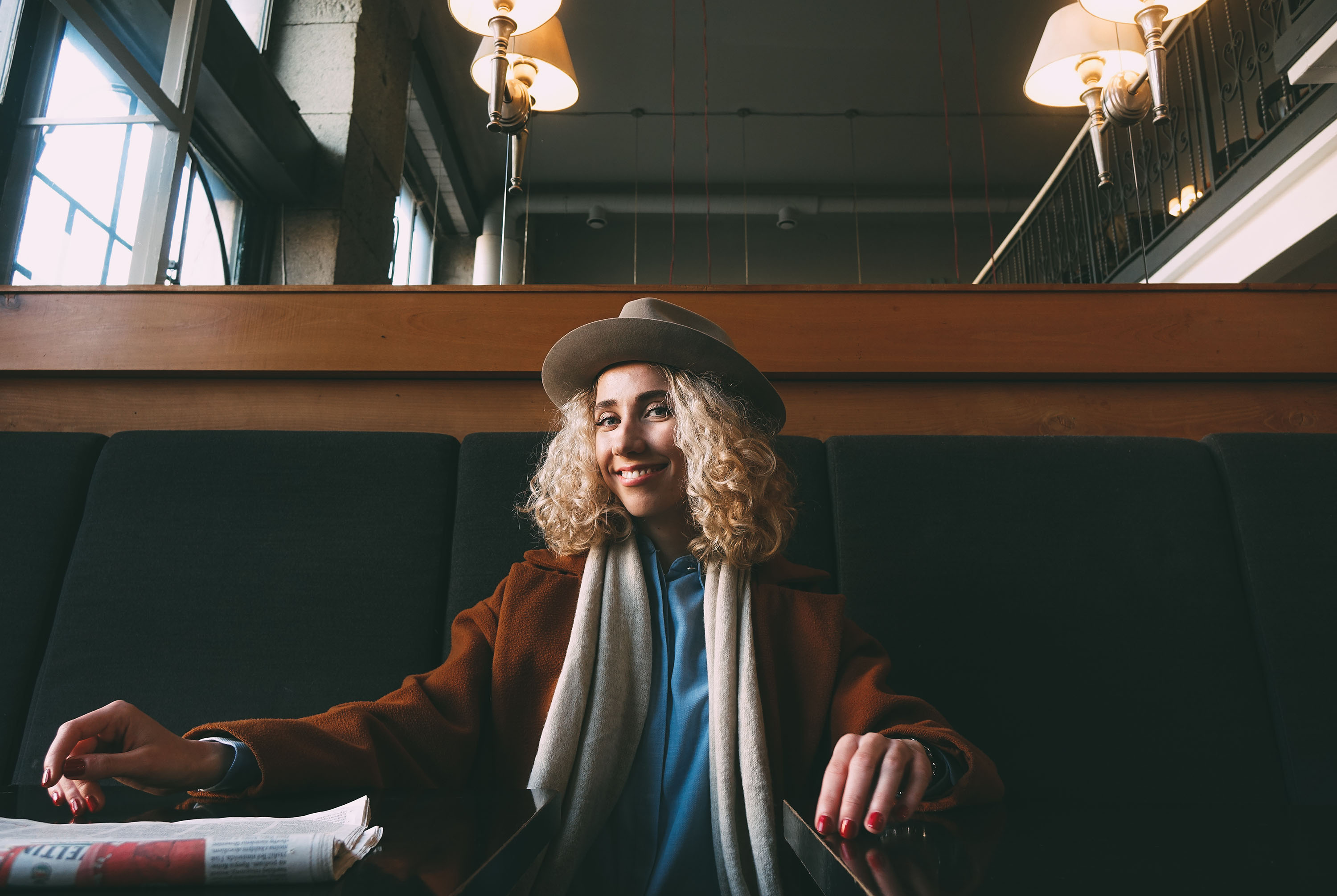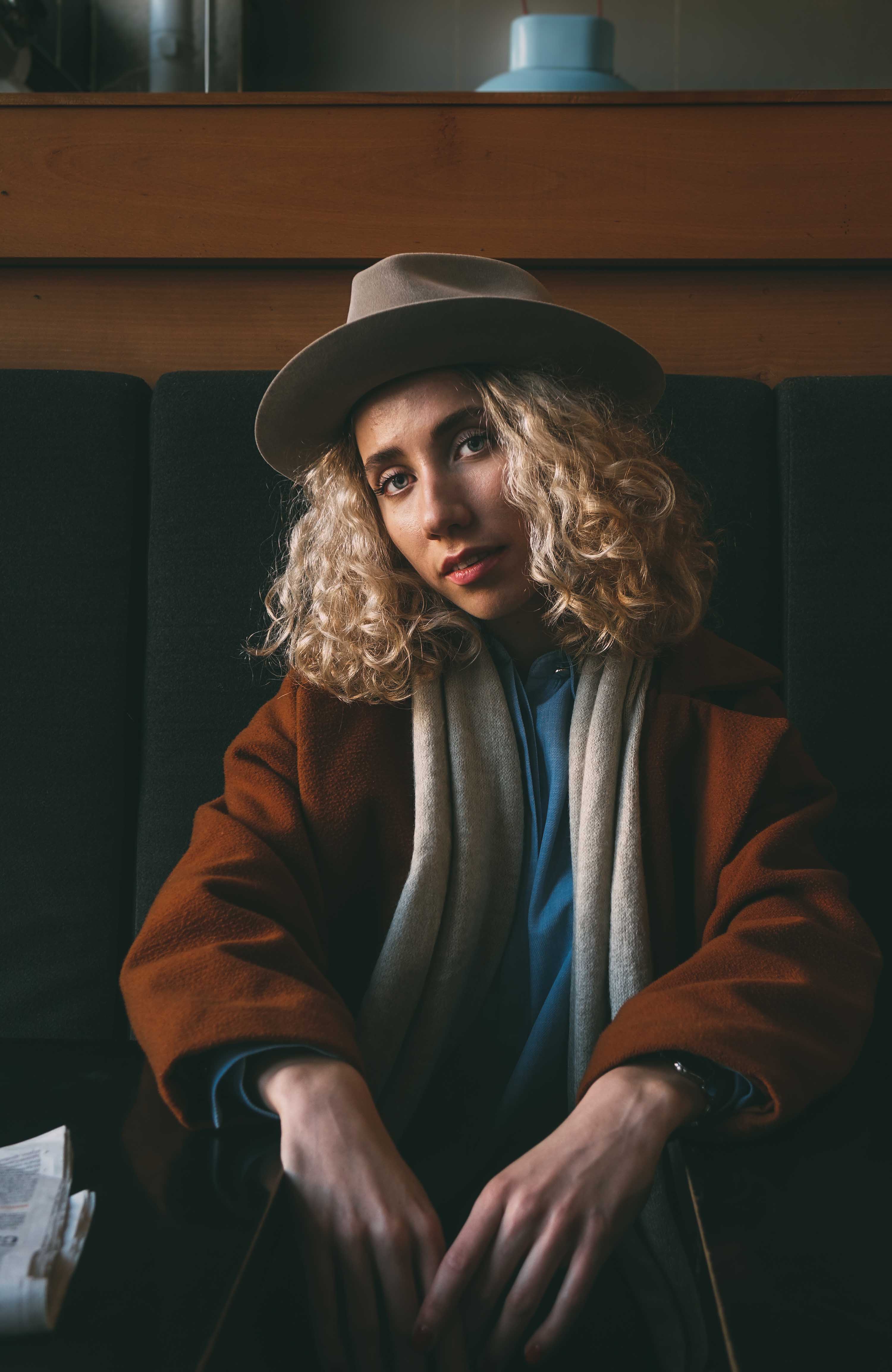 On this photo taken from the balcony, Sofi wears a Sand Fedora in Furfelt.