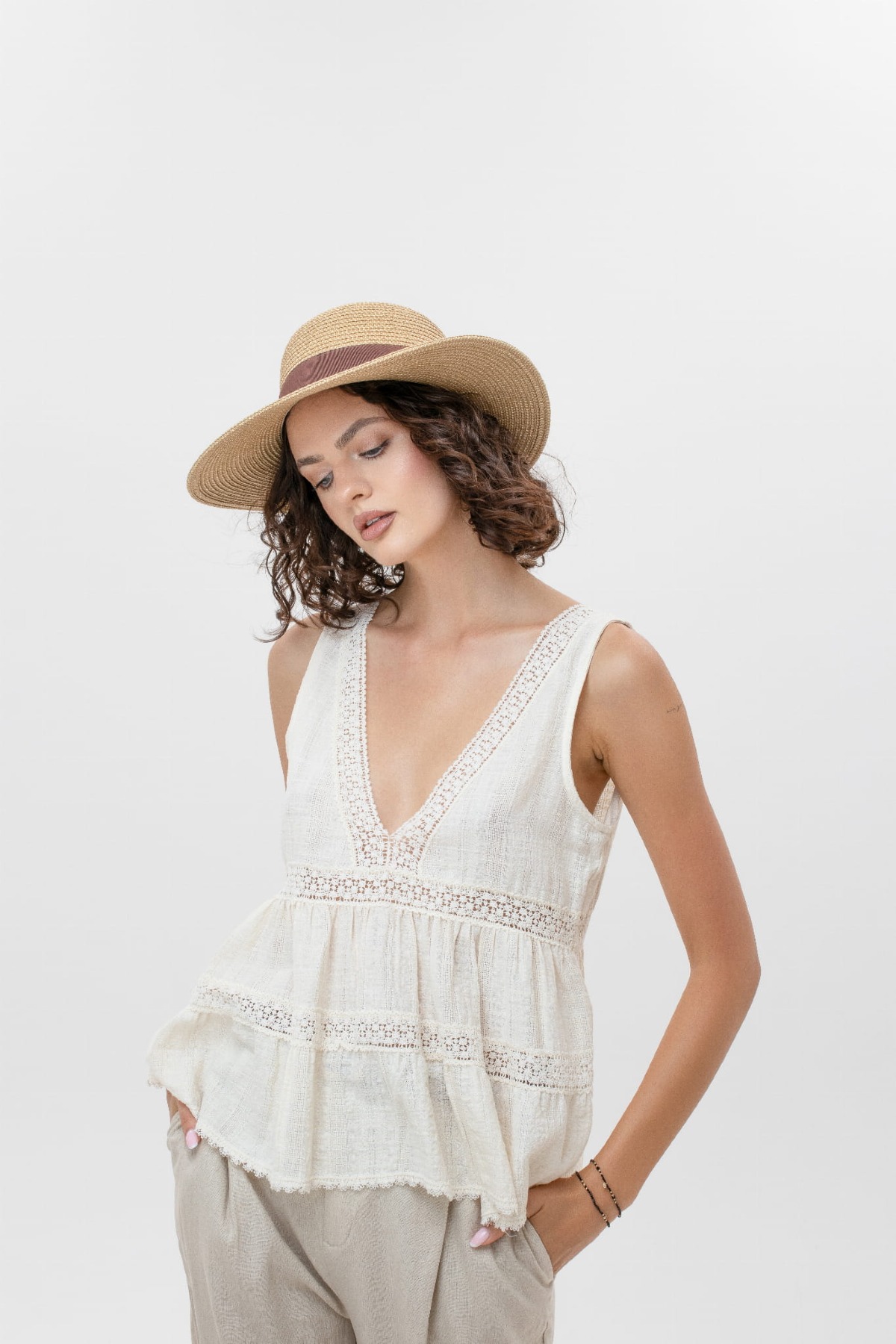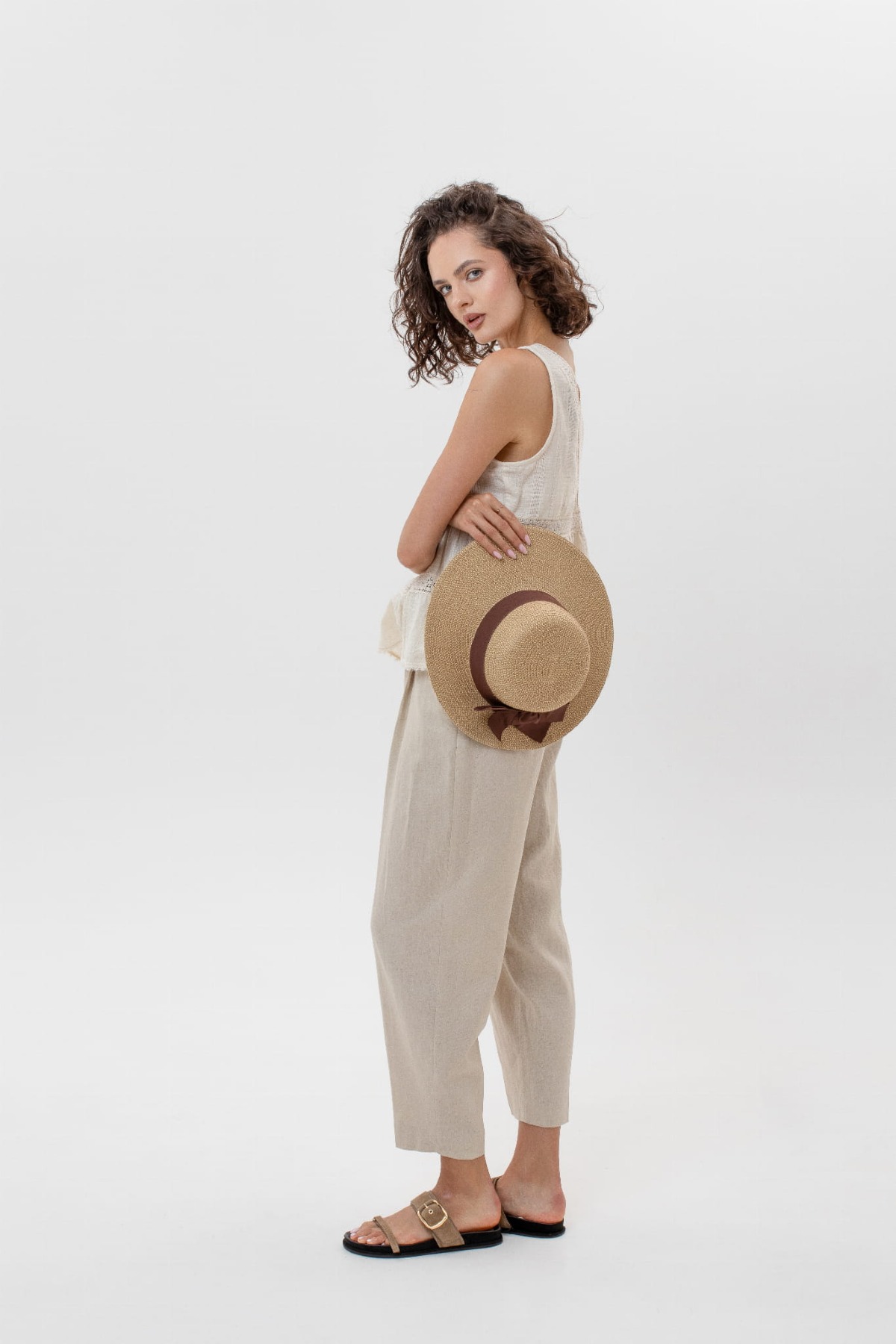 The hat can be rolled up and easily packed into a suitcase for transport.