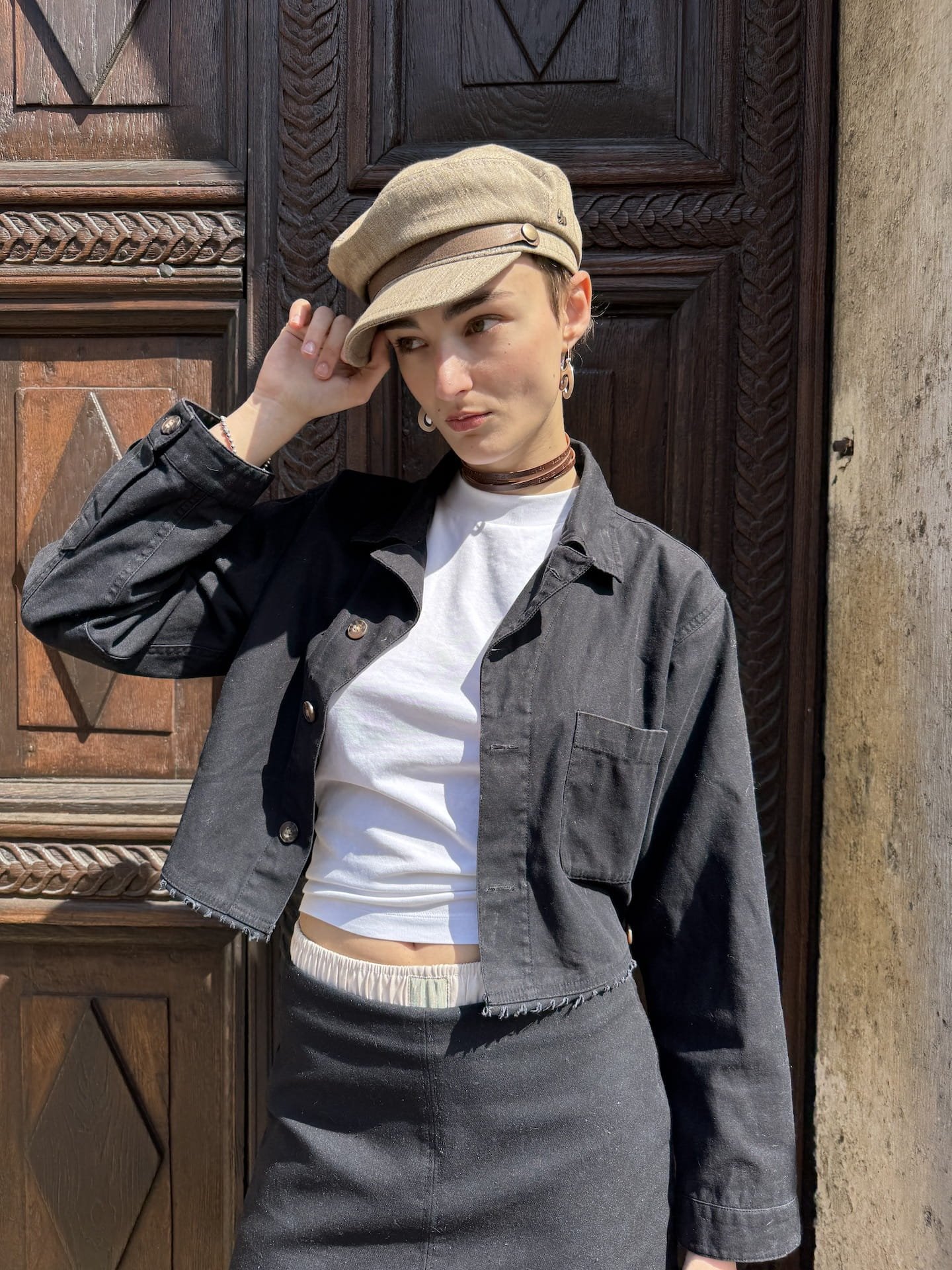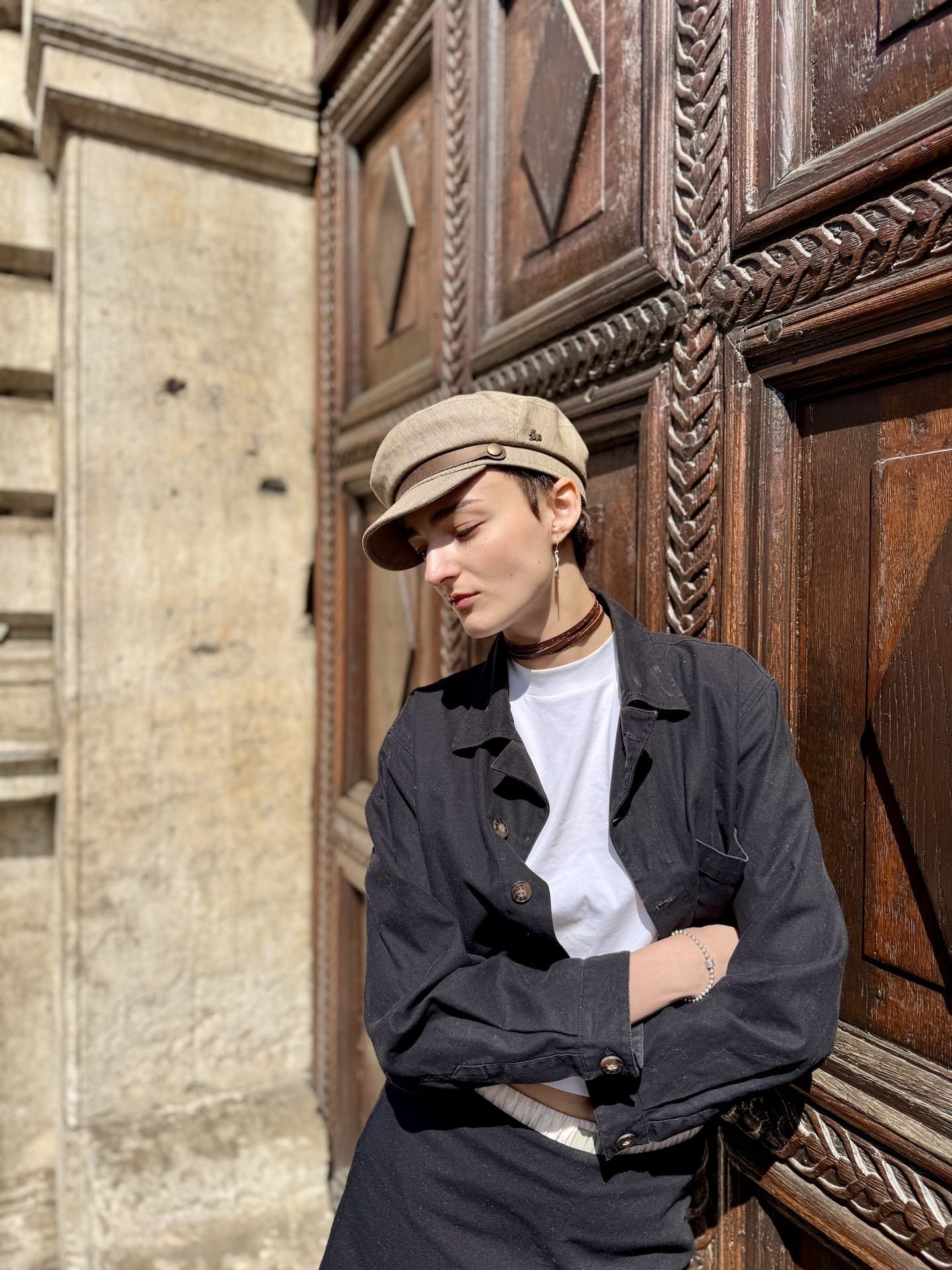 In sailor's style, in beige, it will be the perfect summer headwear for men and women.