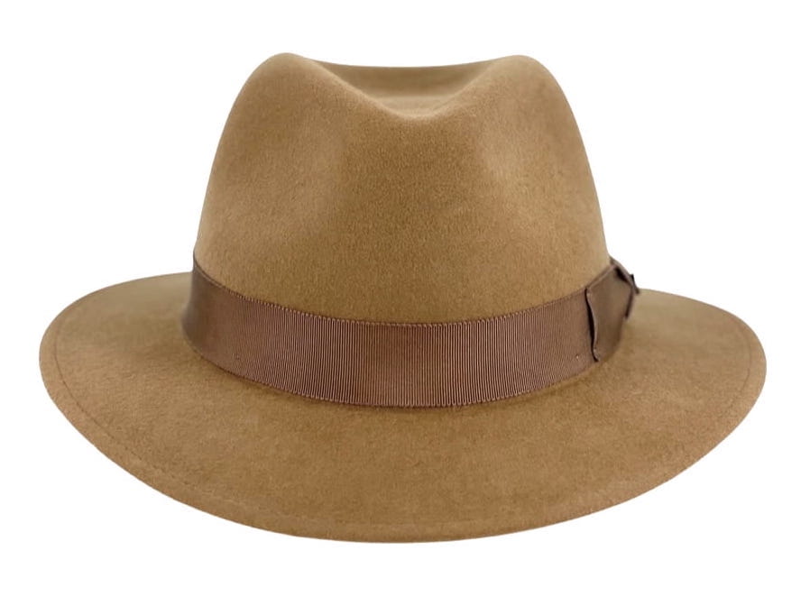 Le Szapo Fedora, un chapeau camel bordé d'un élégant ruban gros grain