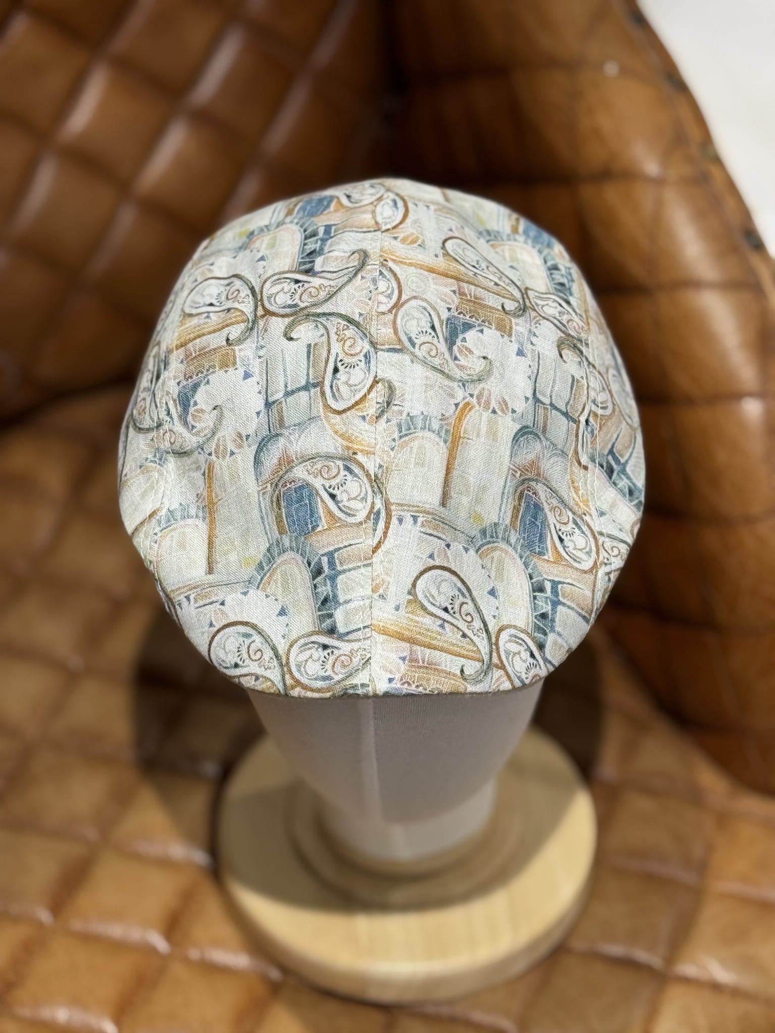Il est en lin et une doublure en coton est cousue à l’intérieur de la casquette, grâce à laquelle il s’adapte bien et est confortable à porter.