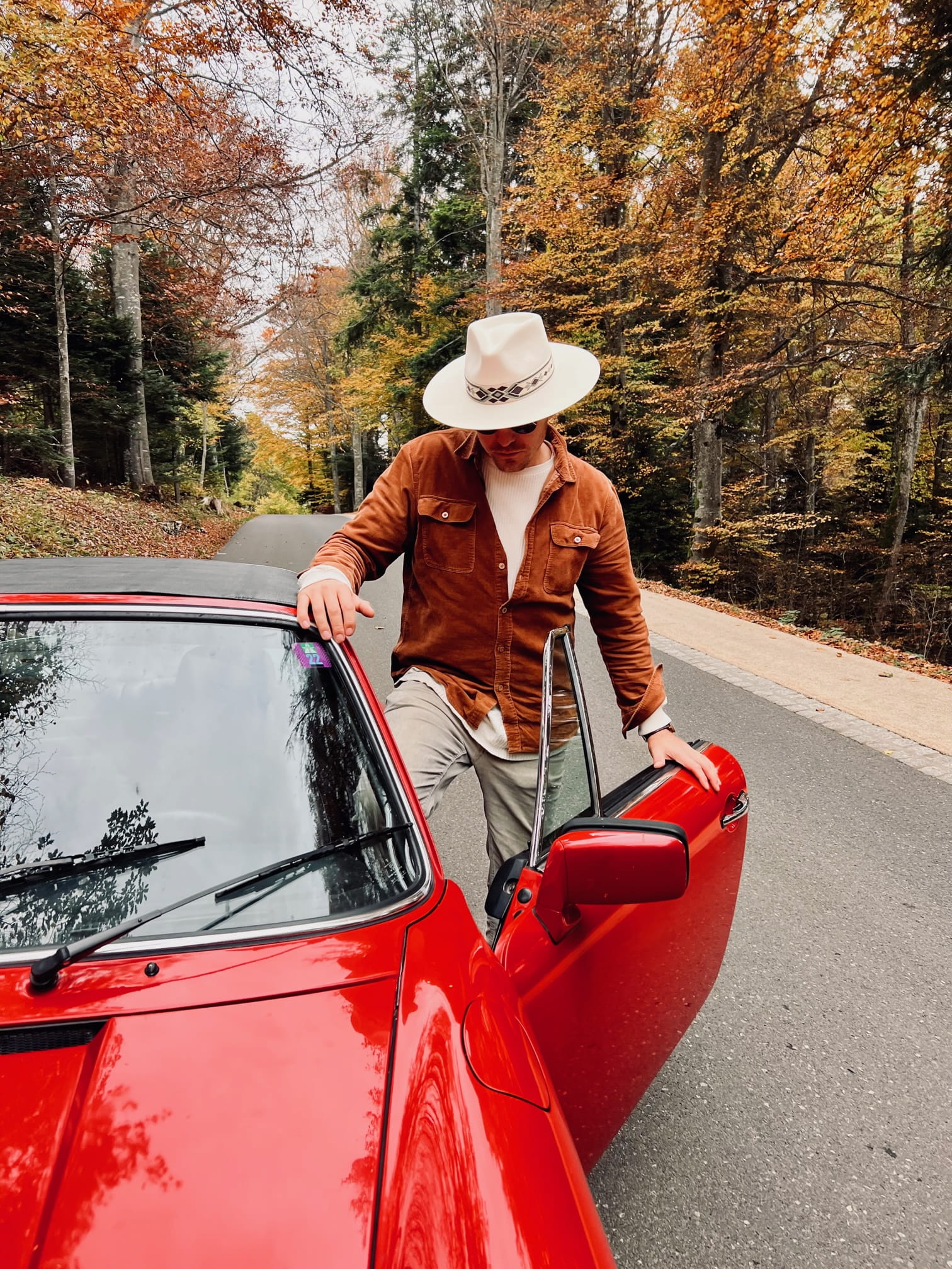 Un chapeau à large bord droit, pour elle et pour lui.