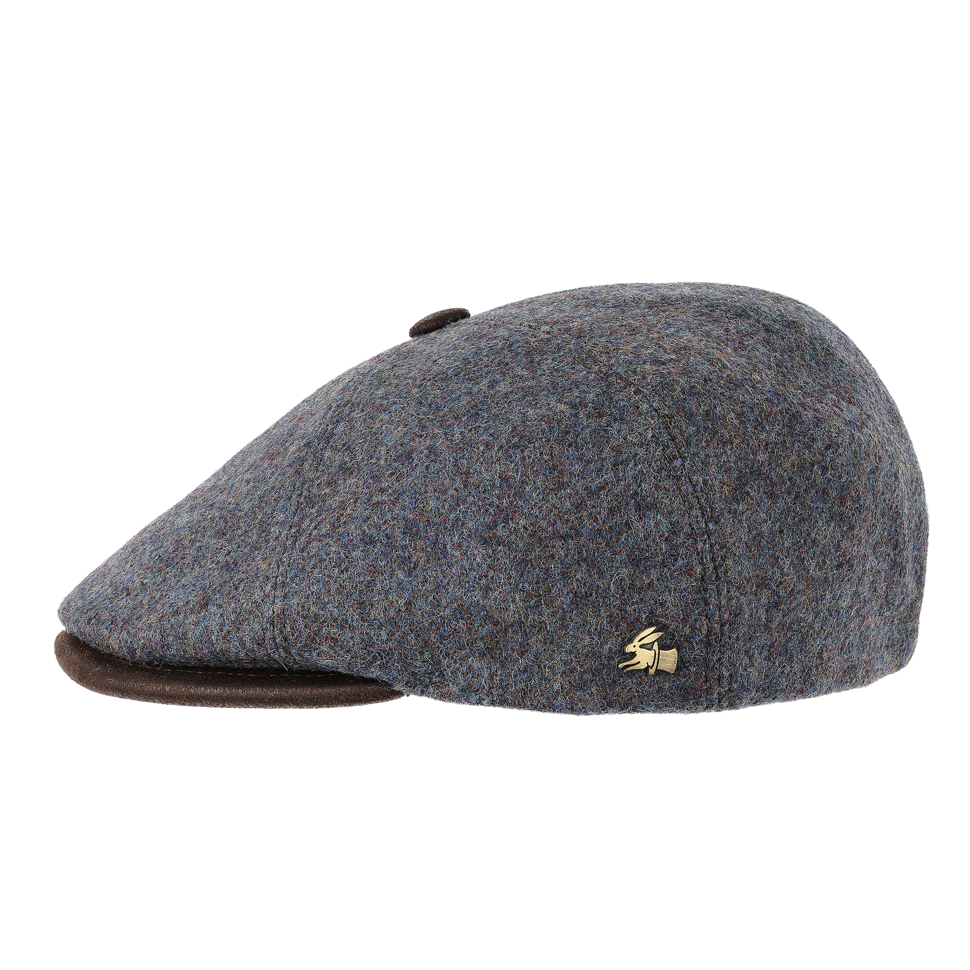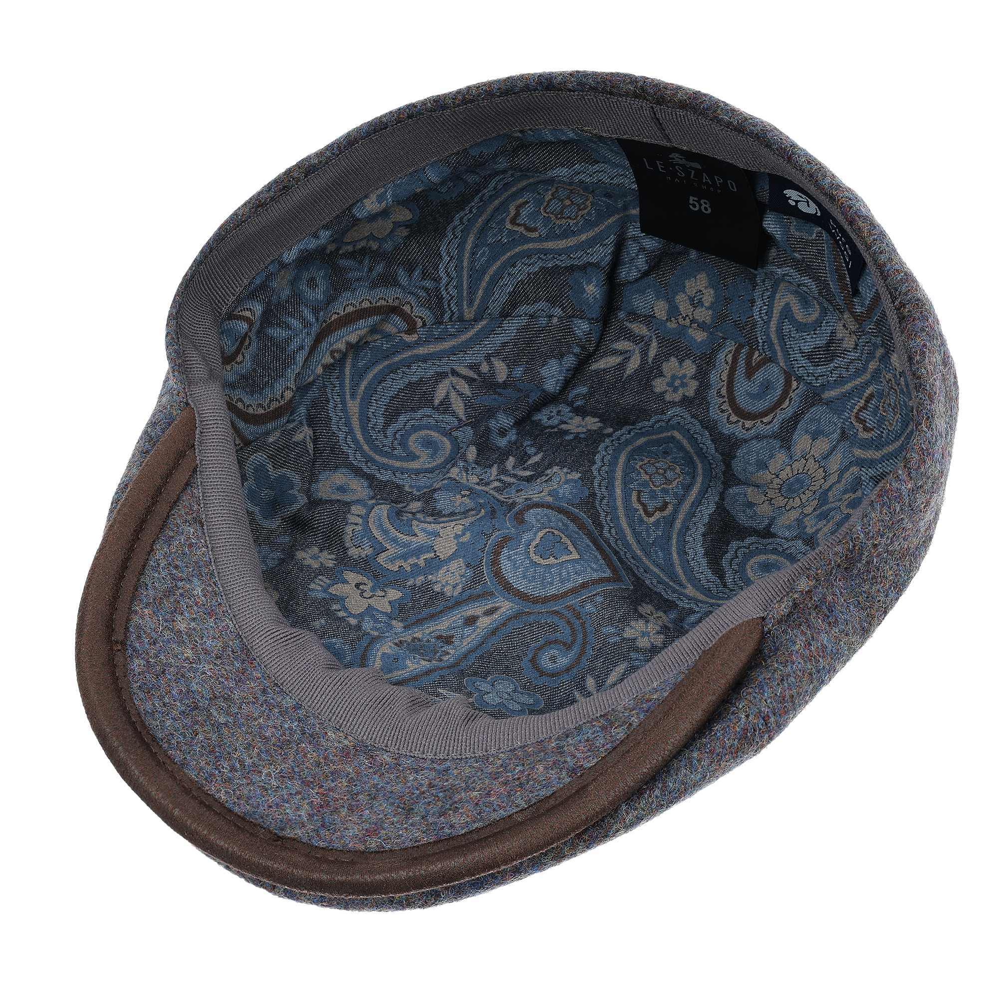 Matériau et couleur : bleu mélangé, visière bordée d'une bande de cuir noir. Doublure intérieure en coton.