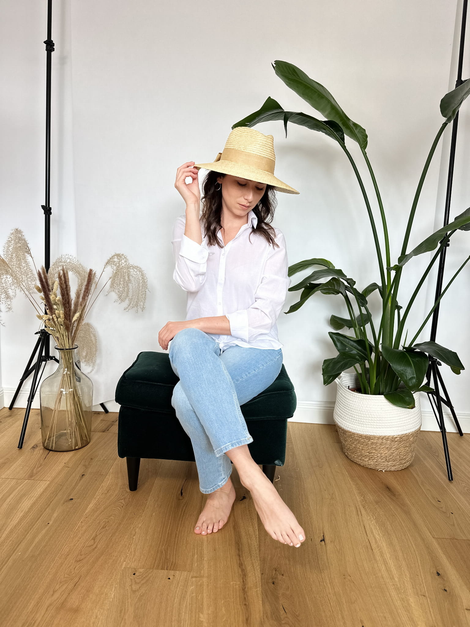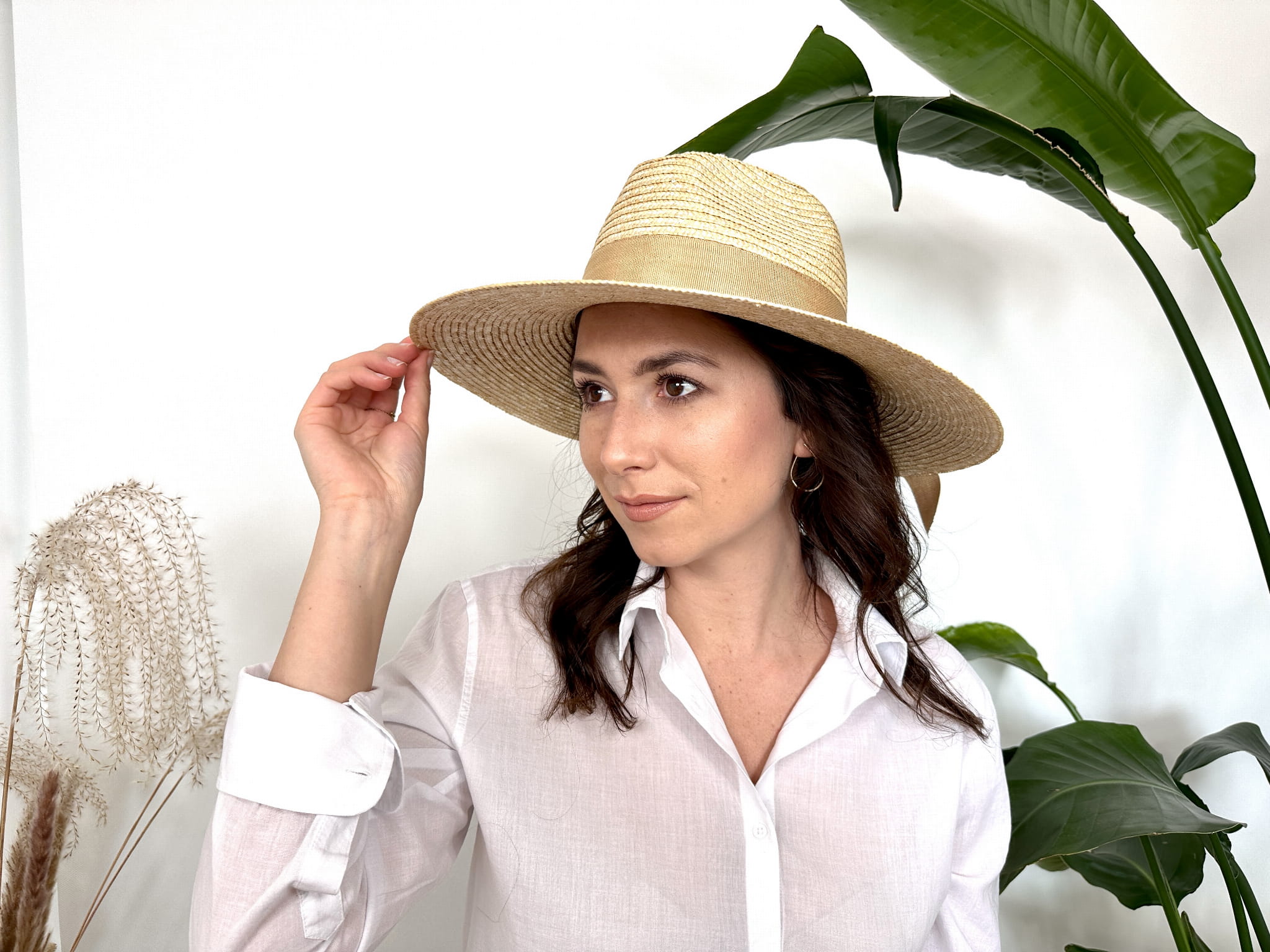Jeanne Fedora in natural straw is the perfect headgear on sunny days.