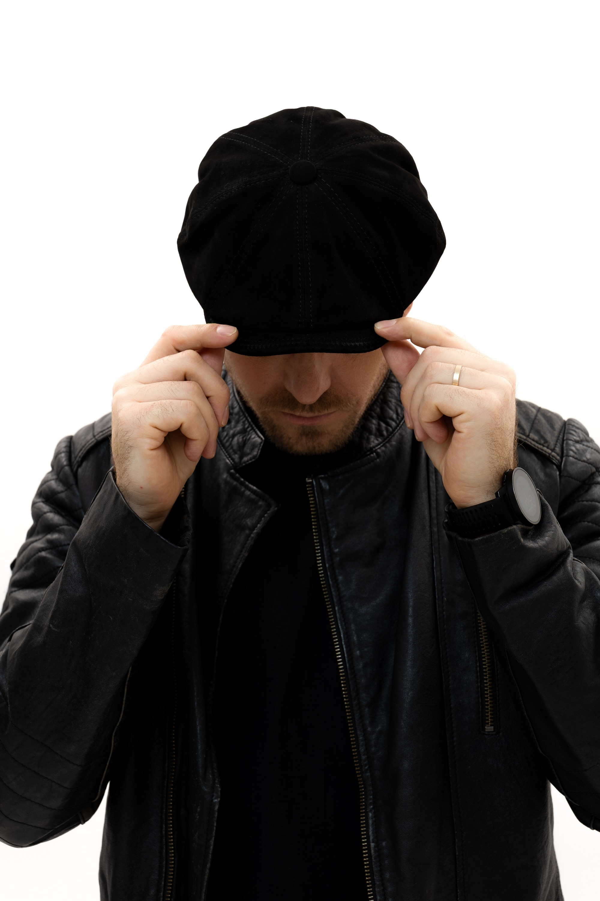 Model został wykonany z wysokiej jakości weluru (zamszu) z naturalnej skóry owczej. Miękki i przyjemny w dotyku materiał doskonale układa się na głowie, zapewniając wygodę oraz trwałość na lata. Naturalna skóra nadaje kaszkietowi szlachetny, ponadczasowy wygląd.