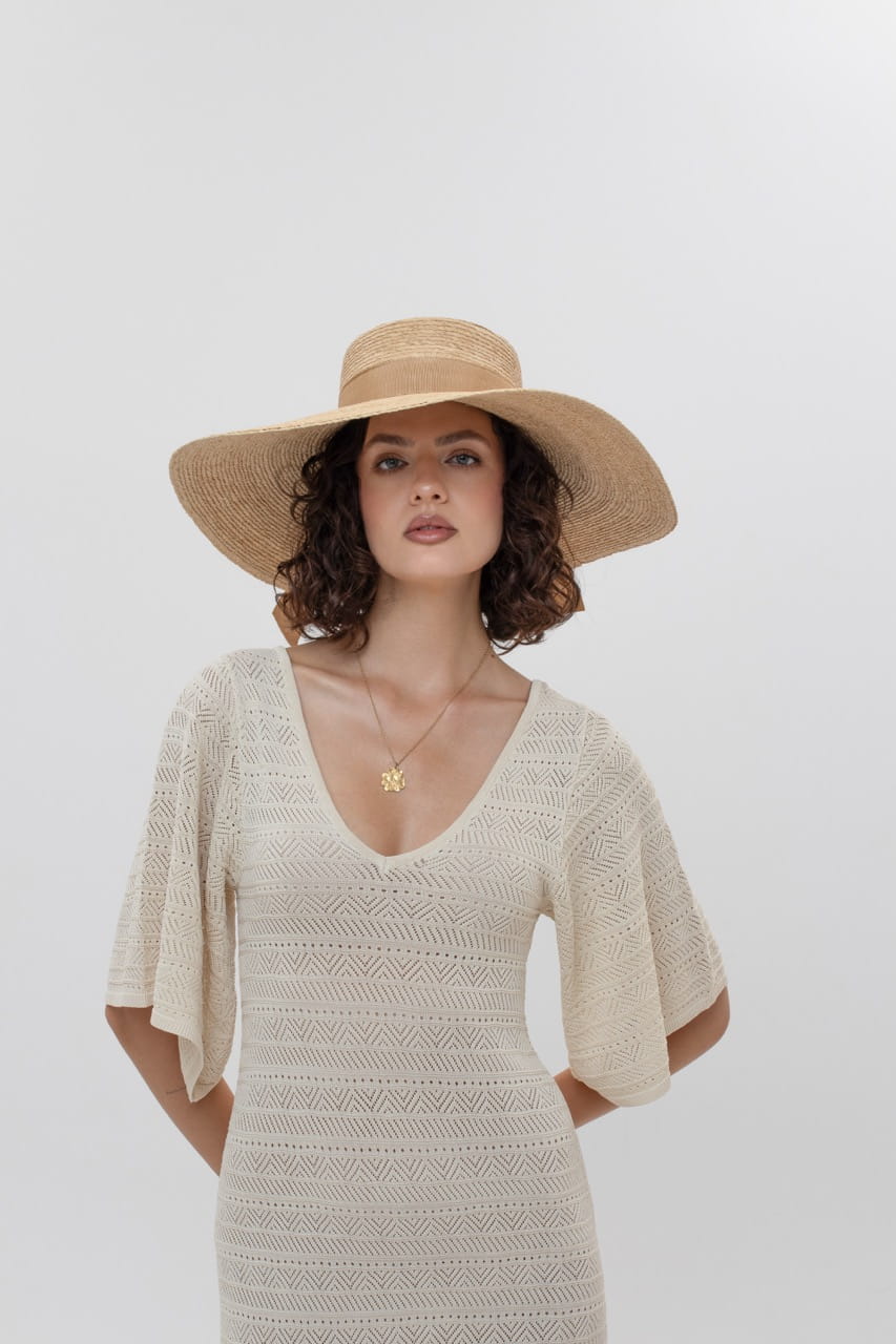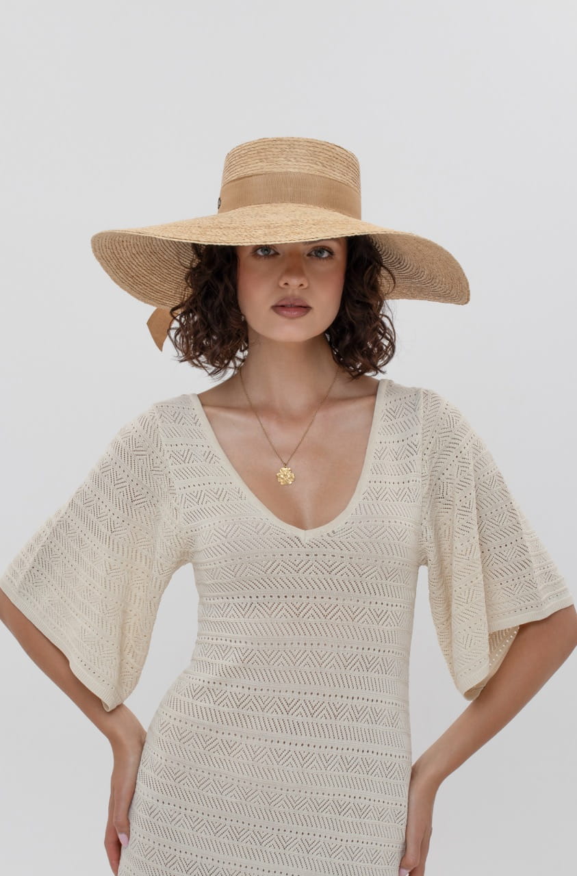 Trimmed with a beige grosgrain ribbon, it will perfectly match your summer styling.
