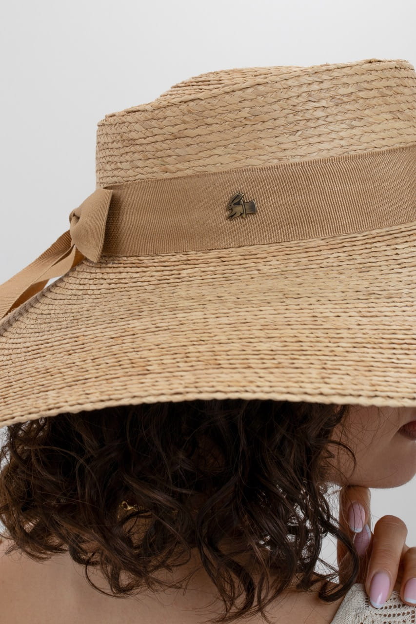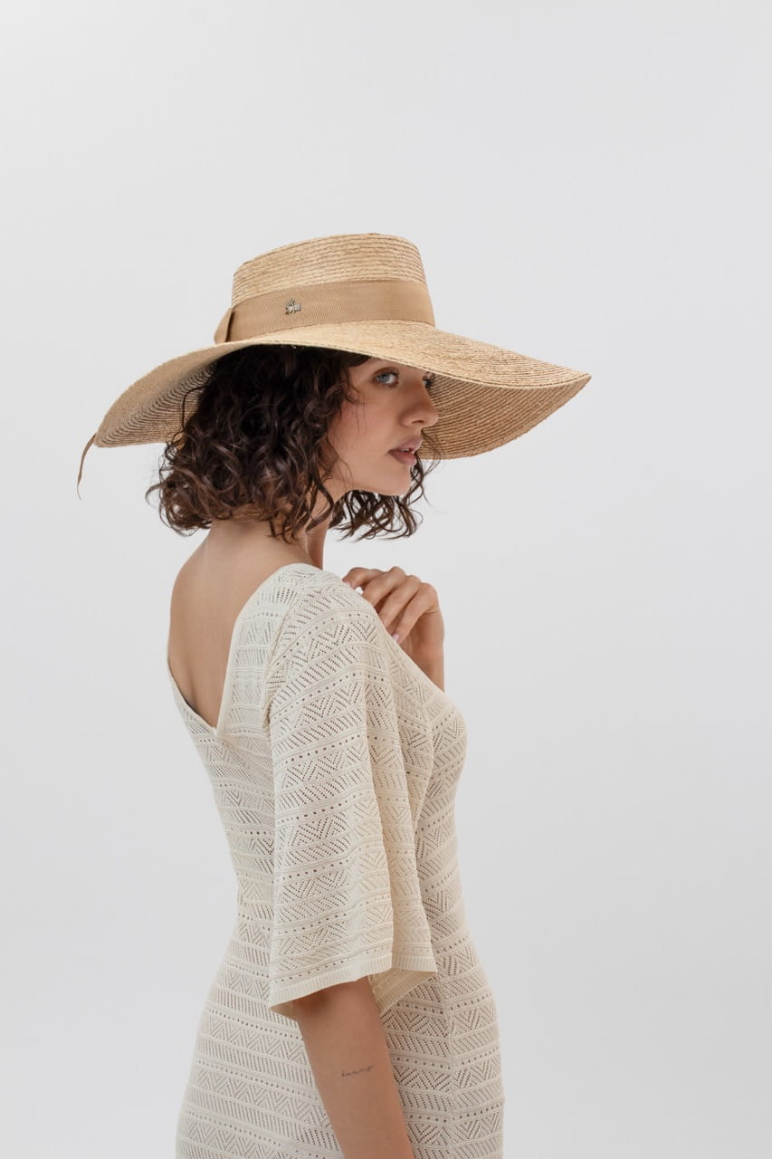 A beautiful women's hat, hand-woven from raffia, with a wide brim.