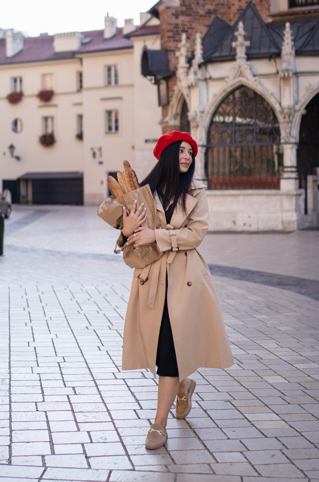 Idealny na jesień i zimę z dodatkowo wszytą satynową podszewką.