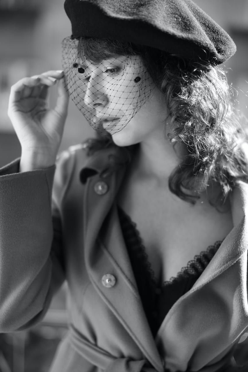 Klasyczny francuski beret z woalką wyprodukowany z najwyższej jakości wełny premium we Francji w miejscowości Bayonne. Woalkę można również schować pod beret.