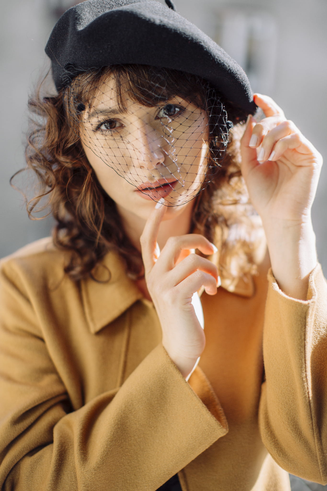 Le Szapo Beret z Woalką Czarny