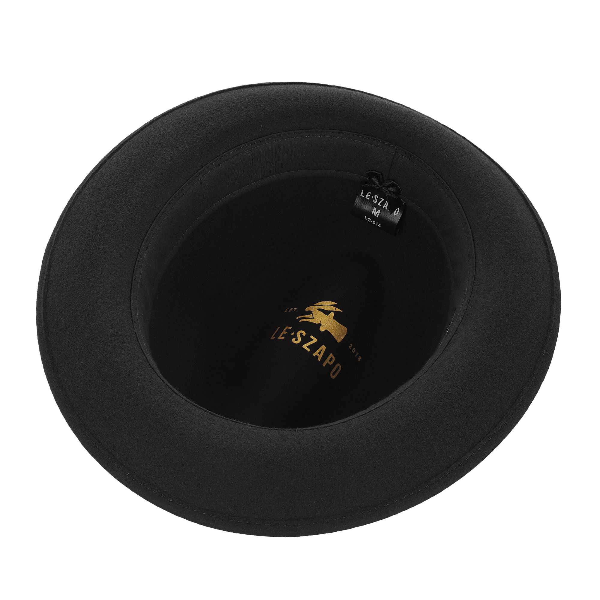 Kapelusz wykończony jest czarną, elegancką wstążką, a wewnątrz znajduje się bawełniany potnik, który zapewnia komfort noszenia przez cały dzień. Filc z wełny merino jest miękki, trwały i dodatkowo zaimpregnowany, dzięki czemu kapelusz jest odporny na deszcz i zgniecenia.