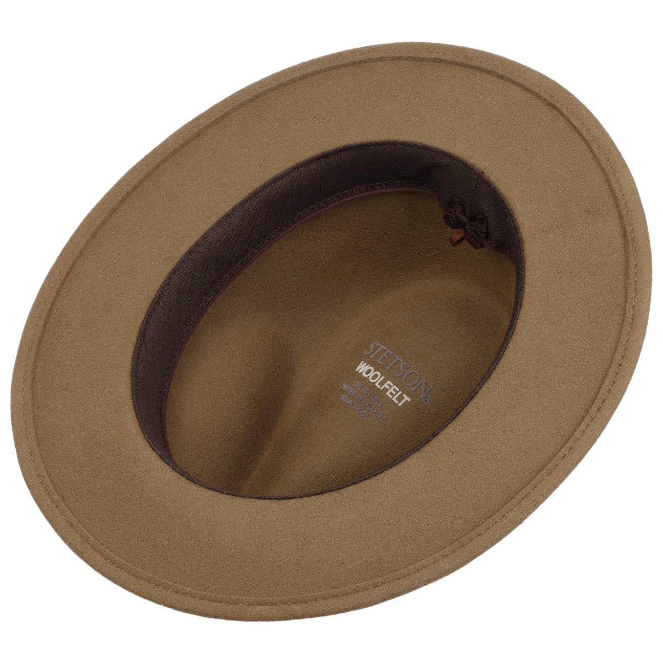 Kapelusz podróżny zachwyca klasycznym kształtem outdoorowym i elegancko wygiętym rondem, jest wyjątkowy ze względu na swoje giętkie właściwości i miękkość w dotyku, nie wspominając o doskonałej zdolności przystosowania się do ekstremalnych warunków pogodowych, takich jak deszcz, śnieg, kurz lub brud.