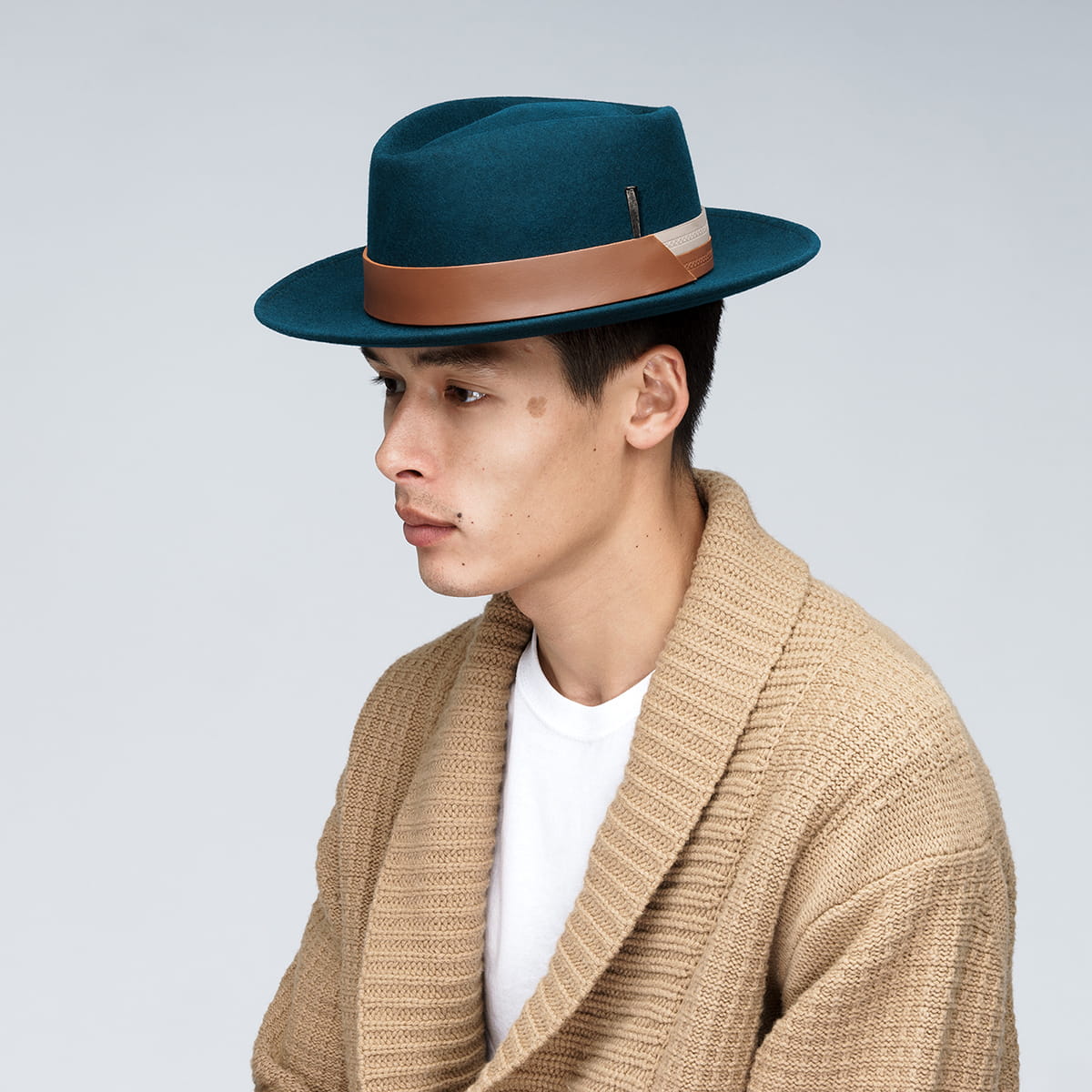 Ten piękny kapelusz fedora został wyprodukowany w Kaliforni.