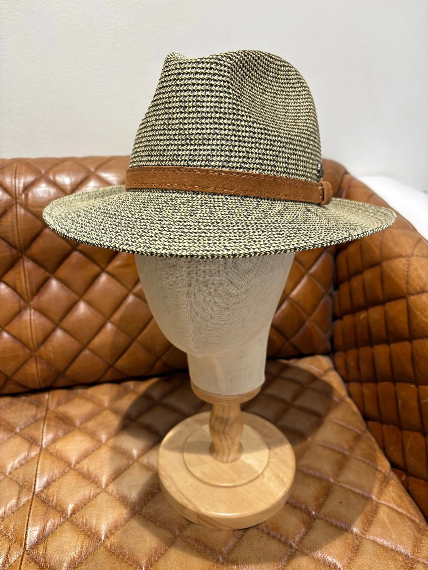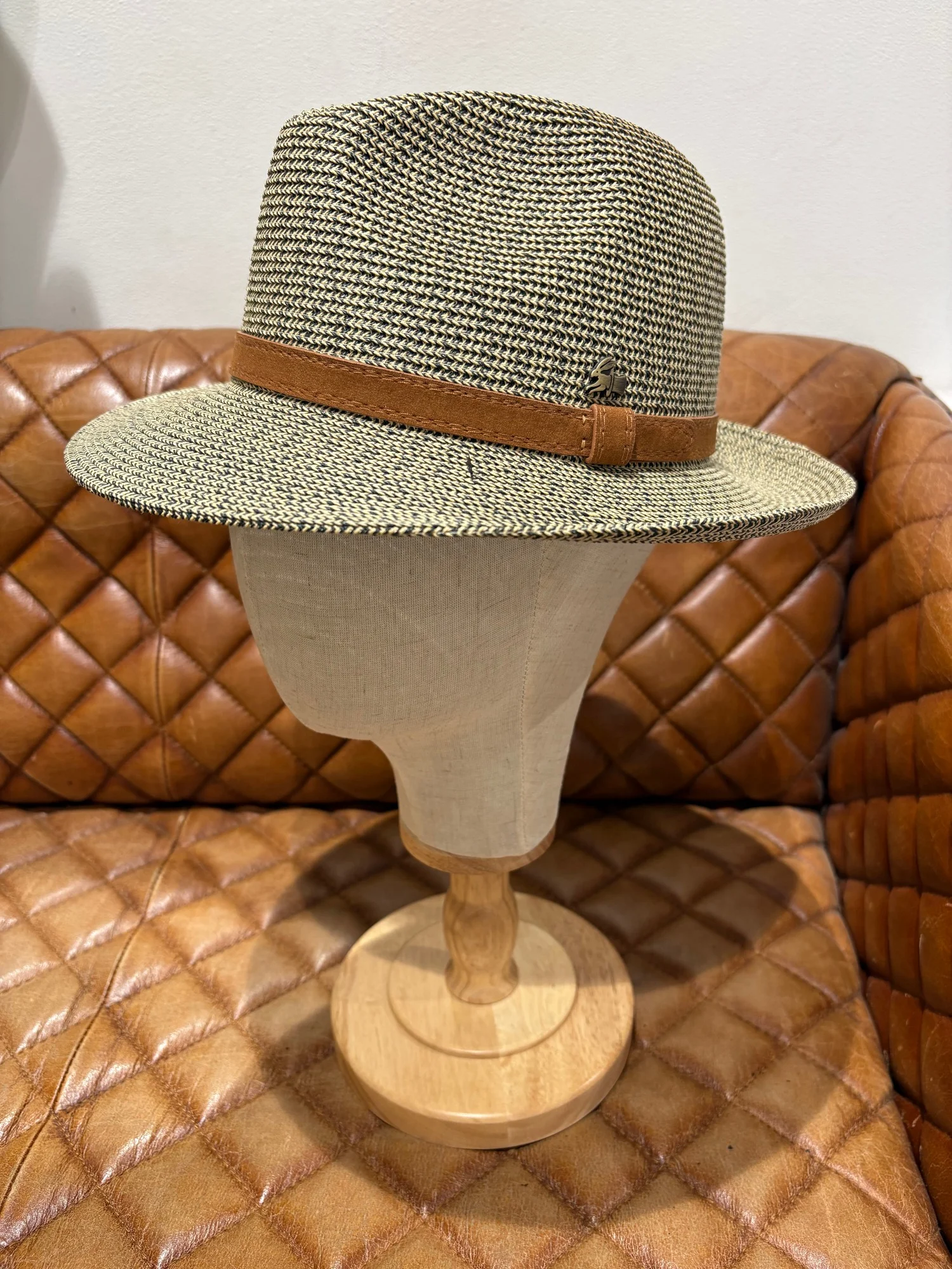Casualowy kapelusz w stylu fedory to doskonałe uzupełnienie letnich stylizacji. Model utrzymany jest w odcieniu zielonego melanżu, który nadaje mu oryginalnego, naturalnego charakteru. Całość dopełnia brązowy, skórzany pasek, podkreślający subtelny, lekko vintage’owy styl.