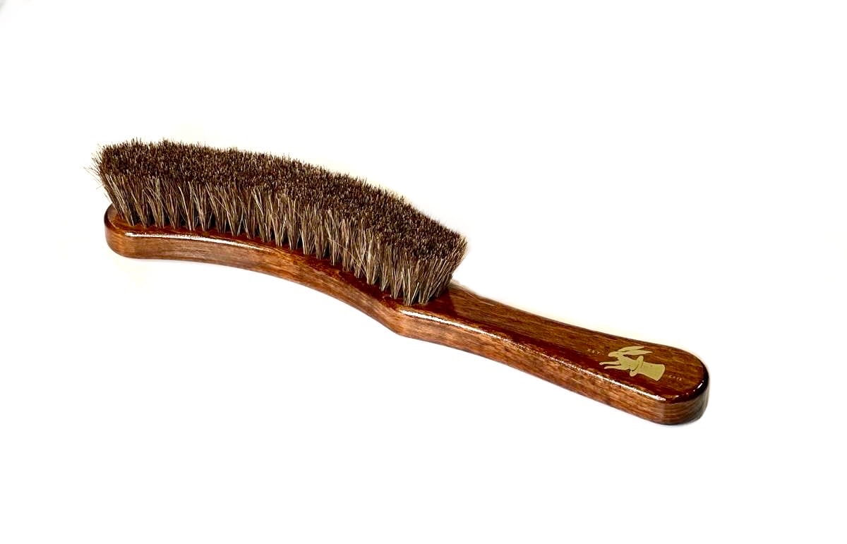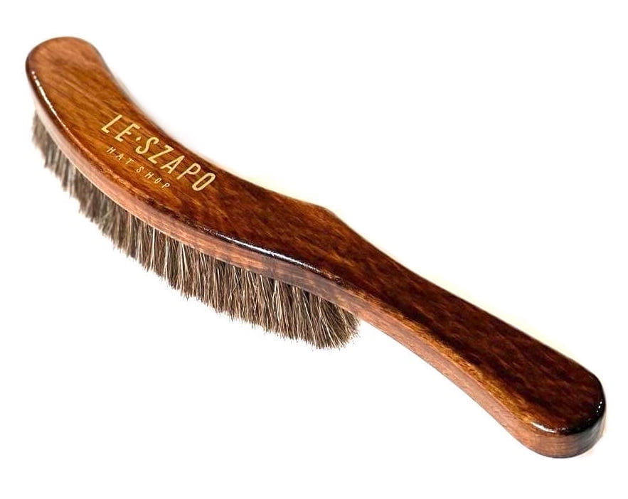 This wooden hat brush made of soft bristles that do not damage the felt.